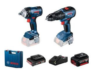 ( ilość produktów: 56 )Bosch Zestaw akumulatorowy 18V: udarowa wiertarko-wkrętarka GSB 18V-50, klucz udarowy GDS18V-400, 1 x 2.0 Ah, 1x 5.0 Ah, ładowarka GAL18V-40, walizka