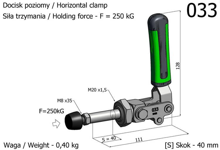 - Docisk uzyskuje blokadę w dwóch skrajnych położeniach rękojeści, przy pchaniu obrabianego przedmiotu do bazy i przy ciągnięciu.