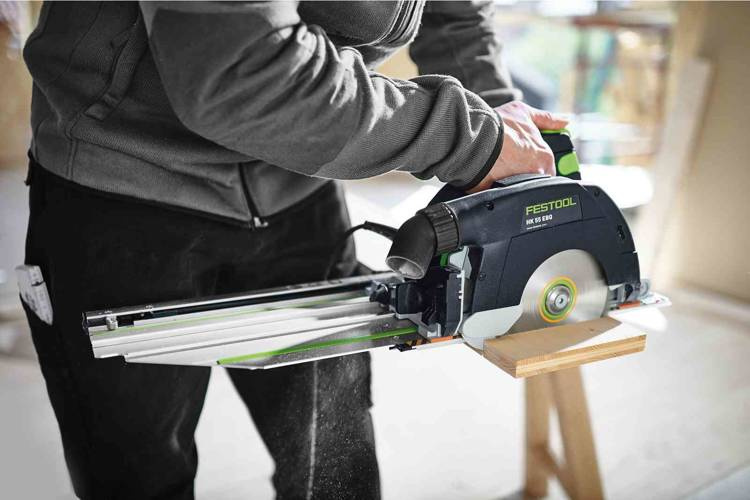 • Ręczna pilarka tarczowa HK 55 w połączeniu z prowadnicą FSK. Nowy system cięcia zapewnia większą niezależność, a także łączy precyzję i wydajność z prostotą obsługi oraz zoptymalizowaną ergonomią. Funkcje, takie jak ustawianie głębokości cięcia, zdalna obsługa osłony wahadłowej, klin prowadzący i system FastFix do wymiany tarcz pilarskich, zapewniają przy tym idealne warunki do pracy. A prowadnica gwarantuje precyzyjne i dokładne cięcie za każdym razem.