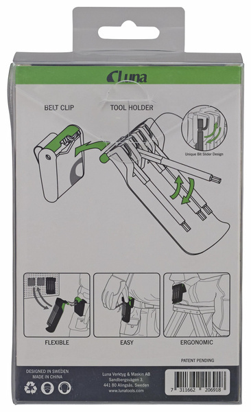 • 4-elementowy zestaw grotów w uchwycie narzędziowym systemu Luna GO z zaczepem na pas.