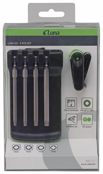 Luna MB11C 4-elementowy zestaw bitów 89 mm (T20-40) w uchwycie narzędziowym systemu Luna GO z zaczepem na pas