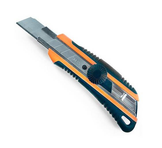 - Nóż wysuwany z ostrzem łamanym oraz ręczną blokadą.