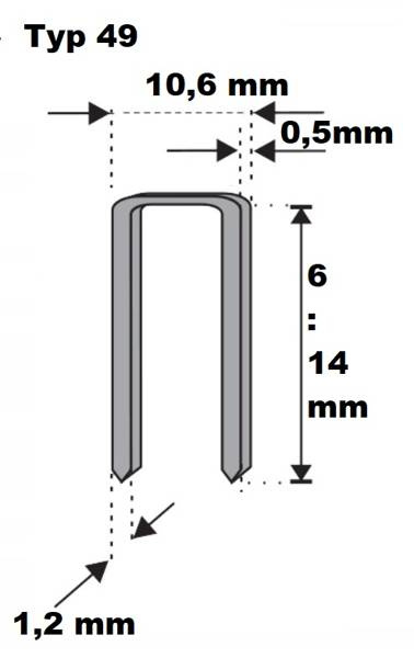 Zszywka zszywki tapicerskie typ 49 PF-14 / 14 mm do młotkowych i aku /8000