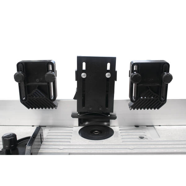 - W zestawie przykładnica kątowa, osłona, prowadnice oraz różne tuleje do mocowania narzędzi