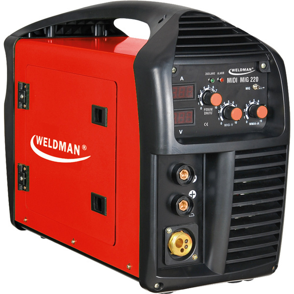 - Spawarka Midi Mig 220 cechuje się zasilaniem jednofazowym oraz wykonaniem według technologii inwertorowej IGBT. Ten produkt jest przeznaczony do spawania metodą FLUX (bez osłony gazu), metodą MIG/MAG (wraz z osłoną gazu) oraz do spawania elektrodami otulonymi prądem stałym (DC).
