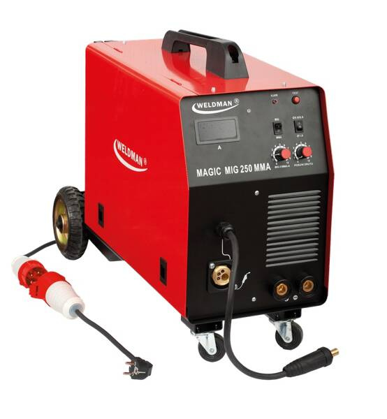 - Spawarka Magic Mig 250 jest przeznaczona do spawania drutami spawalniczymi o średnicy 0,6-1,0 mm, drutami samoosłonowymi 0,9 mm oraz elektrodami otulonymi o średnicy do 4 mm stali niskowęglowej, niskostopowej (MAG), stopowej (MIG), aluminium oraz odlewów żeliwnych.