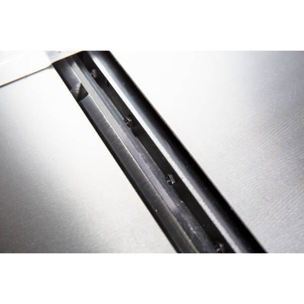 - Łatwo regulowana aluminiowa przykładnica do obciągania, odchylana w zakresie 90° do + 45°