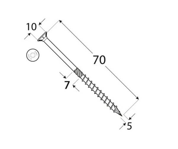 Wkręty ciesielskie konstrukcyjne stożek ocynk DMX 5X70 /opk 200/