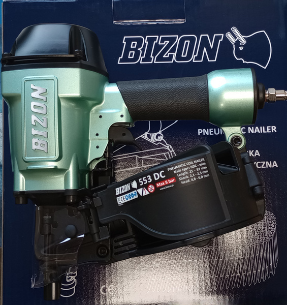 • Gwoździarka legendarnej marki Bizon na gwoździe w zwoju łączone drutem pod kątem 15-16 stopni