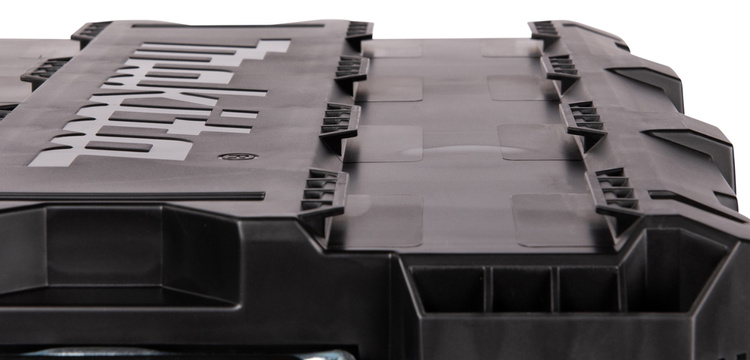- Szybkozłączny system Trak Mount umożliwia błyskawiczne łączenie skrzyń oraz organizerów w dowolnej konfiguracji, zapewniając stabilność i bezpieczeństwo podczas transportu.