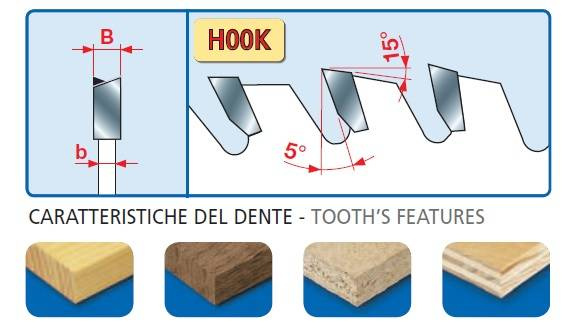 - Kąt natarcia zęba: 5 stopni