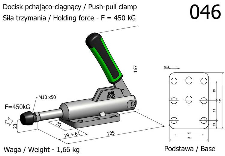 - Docisk szybkomocujący pchająco-ciągnący niski.