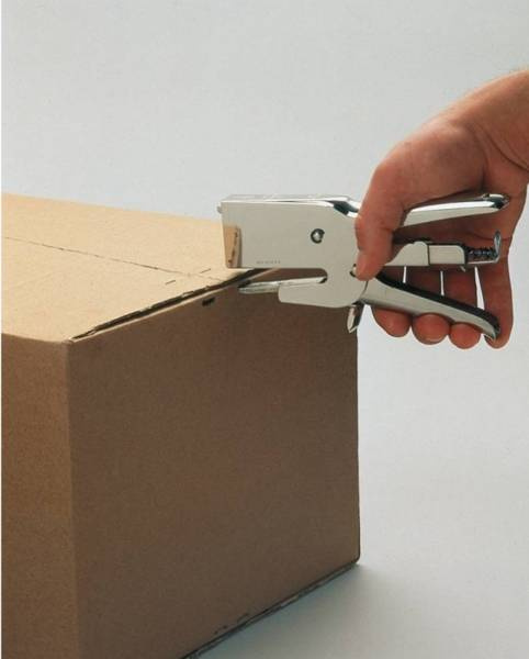 - Może zszywać grube i twarde materiały, w tym tekturę falistą, folie, papier, tworzywa itp.