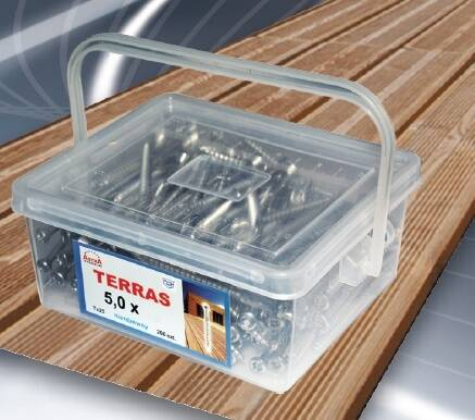 - Wkręty nierdzewne TERRAS do mocowania desek tarasowych.