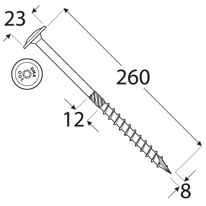 Wkręt Wkręty konstrukcyjne ciesielskie TORX talerz DMX 8X260 ocynk 50 szt